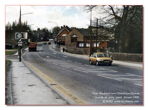 As the saloon car made its steady descent towards the heart of the town, one’s gaze would be drawn to the remarkable sight on the right side of the scene: Wath Church of England Junior School. It stood steadfast, with the air of a guardian, overlooking the passing world. A man, perhaps none other than Albert himself, strolled nearby, his faithful canine companion in tow, homeward bound to the charming village of West Melton.