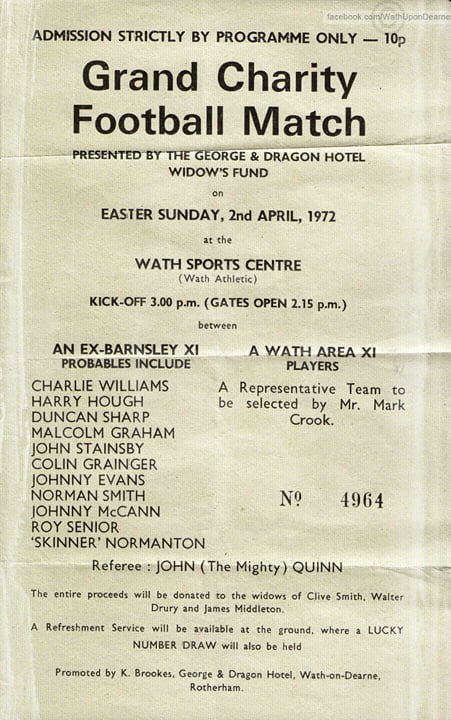 Old programme for Grand Charity Football Match in Wath-on-Dearne 2 April 1972.