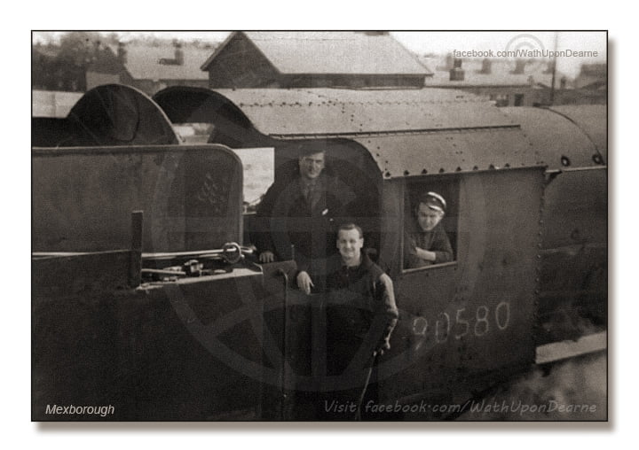 Steam train and crew in Mexborough South Yorkshire