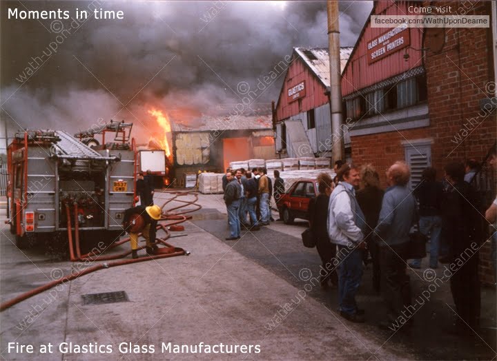 The big fire in 1990’s at Glastics Glass manufacturer’s, the old Waterstones site on Common Lane in Wath-upon-Dearne. Photograph shared by Eileen Shaw.