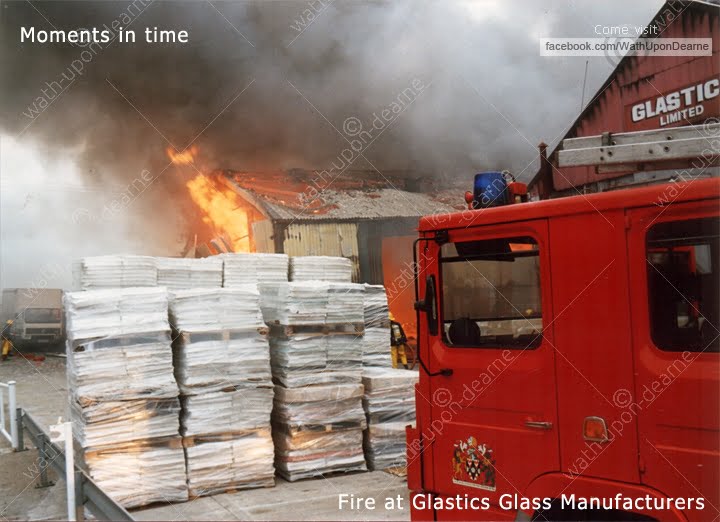The big fire in 1990’s at Glastics Glass manufacturer’s, the old Waterstones site on Common Lane in Wath-upon-Dearne. Photograph shared by Eileen Shaw.