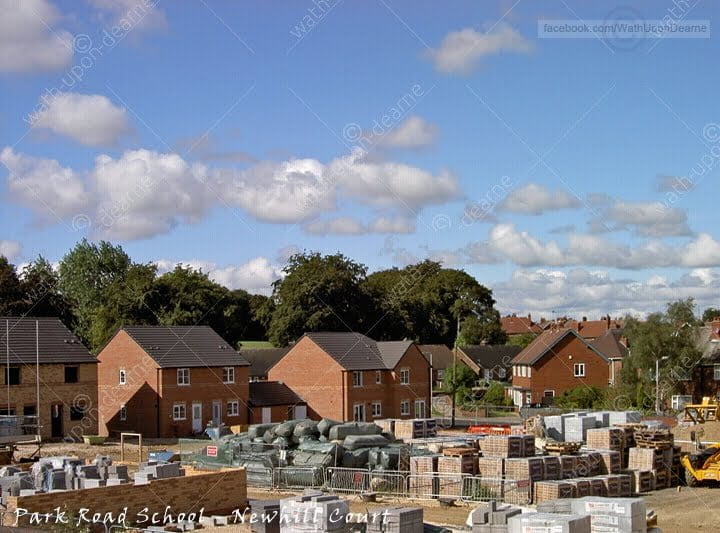 A photograph of the new housing estate under construction now called “Newhill Court”. The grounds were previously the old Park Road Infants School.