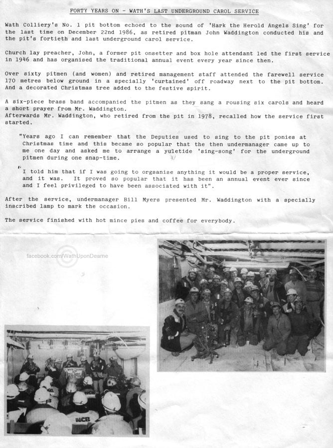 The Last underground Christmas Carol Service at Wath Main Colliery