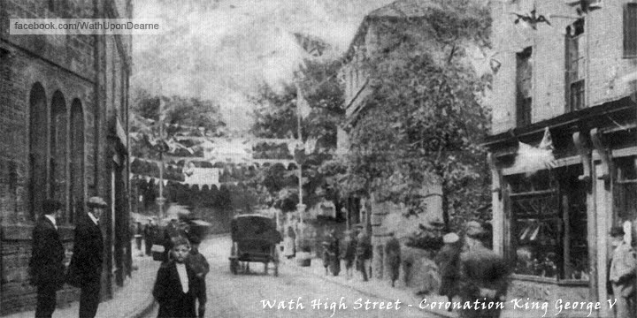 Old photo from the Peter White collection of King George V Coronation celebration on Wath High Street 22 June 1911