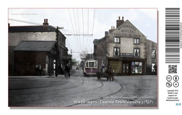 Wath-upon-Dearne village centre c1920’s. No Roundabout and trams in operation.